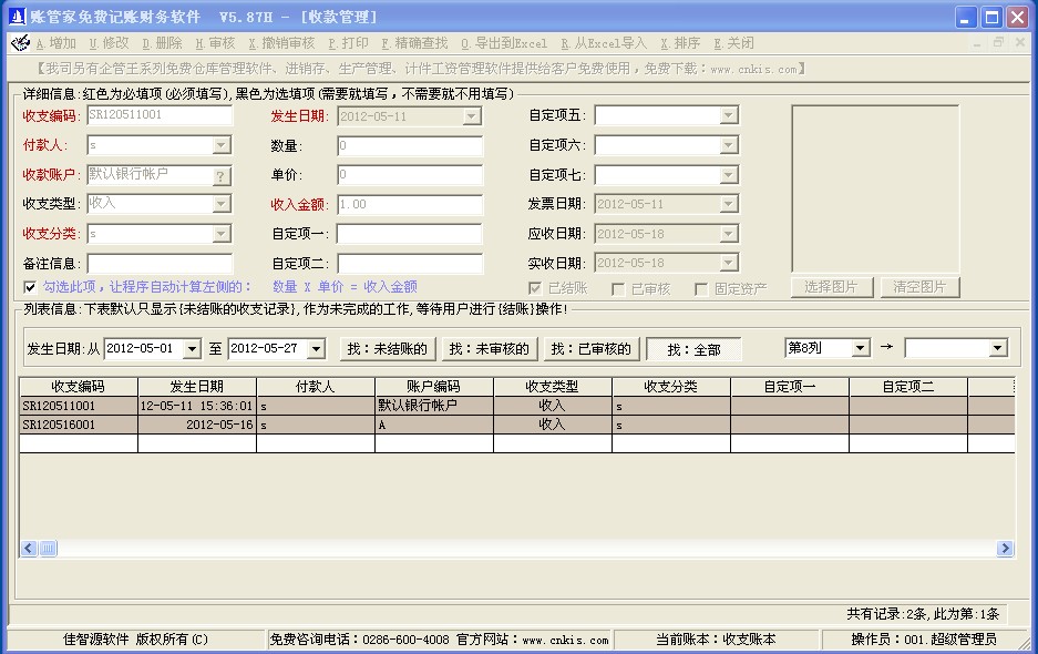 收款登記、已收款統(tǒng)計